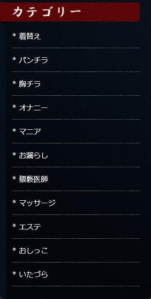 検索カテゴリで、盗撮道は検索が分かりやすく11のカテゴリーに分かれて表示されています。