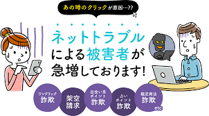 個人情報の流出やコンピュータウイルスの感染、ワンクリック詐欺。