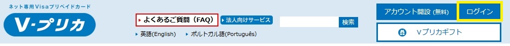 Vプリカのホームページの「ログイン」ボタンをクリックし、設定した「ログインID」と「パスワード」を入力するとMyページにログインすることができます