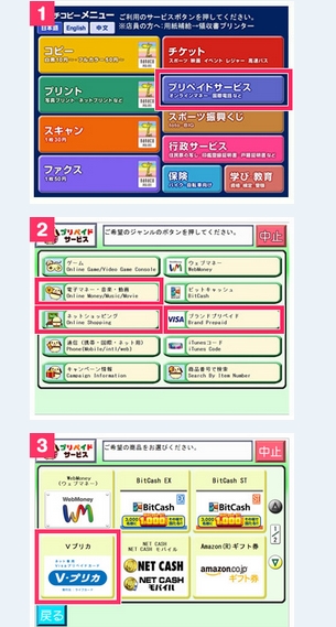 2 コンビニで販売機からVプリカの購入